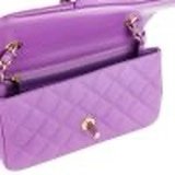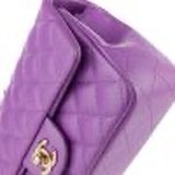 is a Chanel Classic Flap bag in blue quilted denim with gold-tone hardware