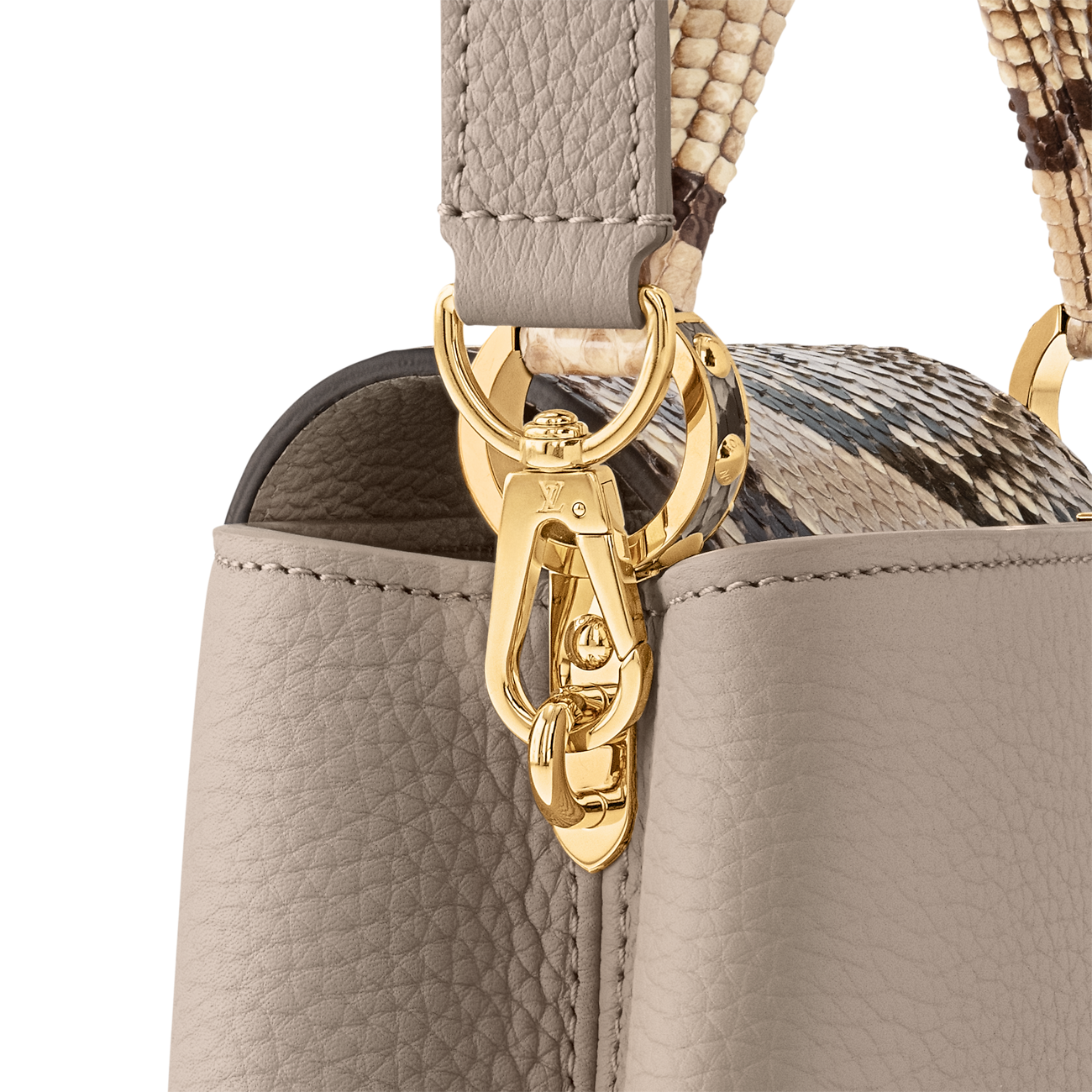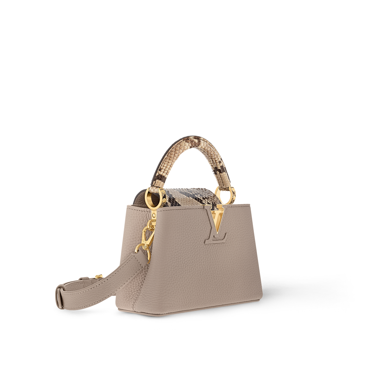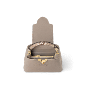 This is a Louis Vuitton Capucines BB handbag Taurillon leather with gold-color hardware.